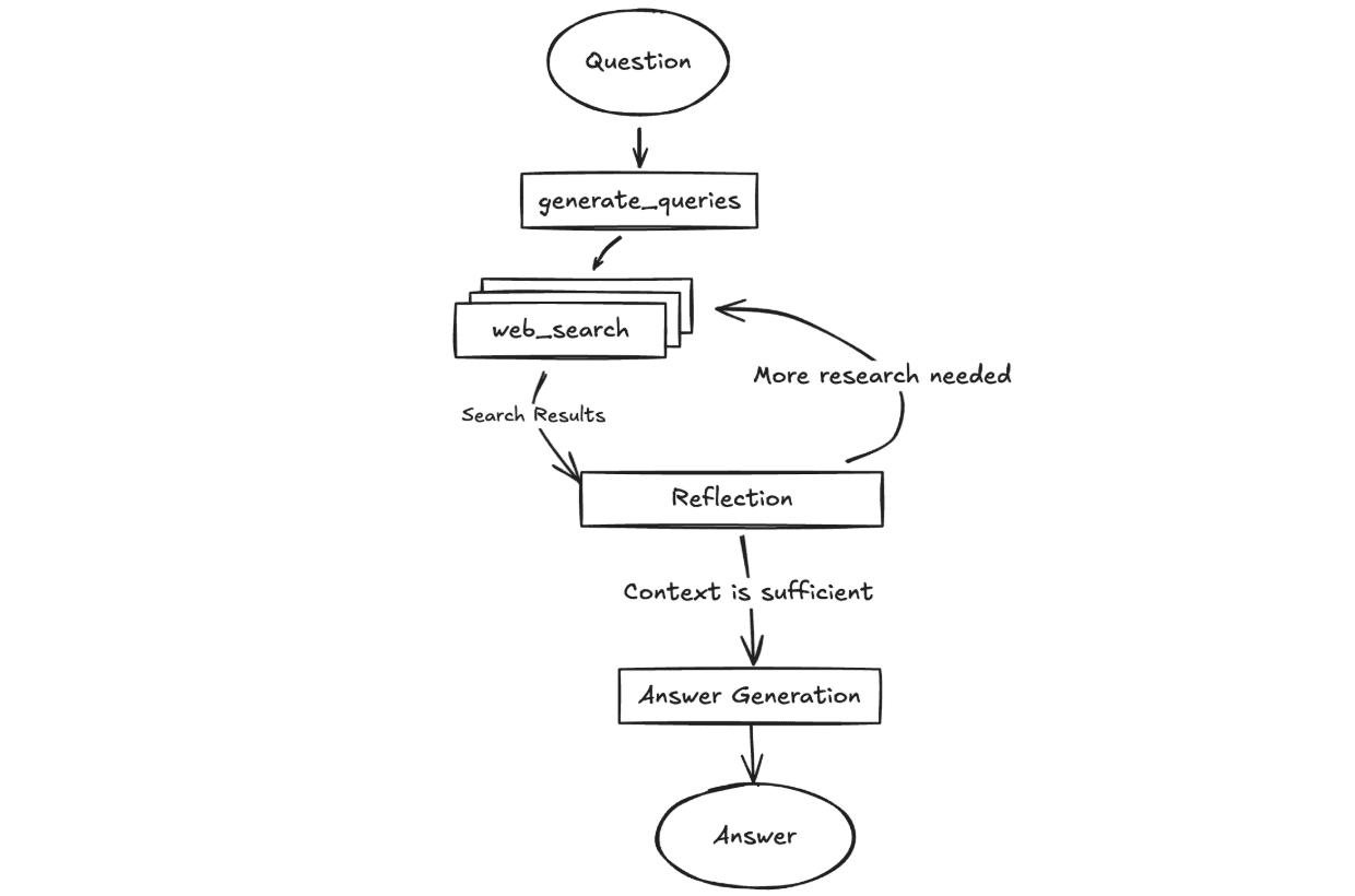 graph = builder.compile(name="pro-search-agent")Fig.4: Example of DeepSearch with LangGraph (code from backend/src/agent/graph.py)